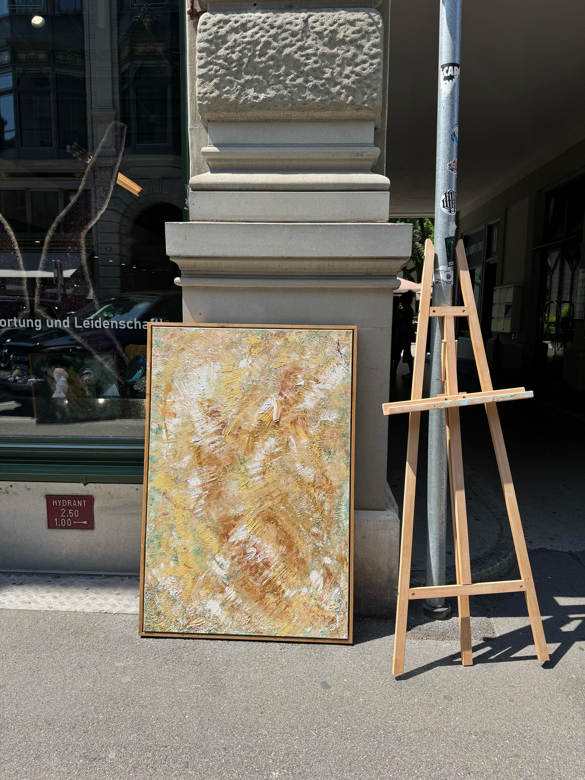 "Swedish Midsummer" radiates the soft, golden glow of long summer evenings in the north. Layers of warm yellow tones flow gently across the canvas, capturing the quiet magic of sunlight lingering late into the night. The subtle variations in shade and texture evoke feelings of warmth, joy, and endless daylight—reminiscent of fields in bloom and the peaceful stillness of a Scandinavian summer.